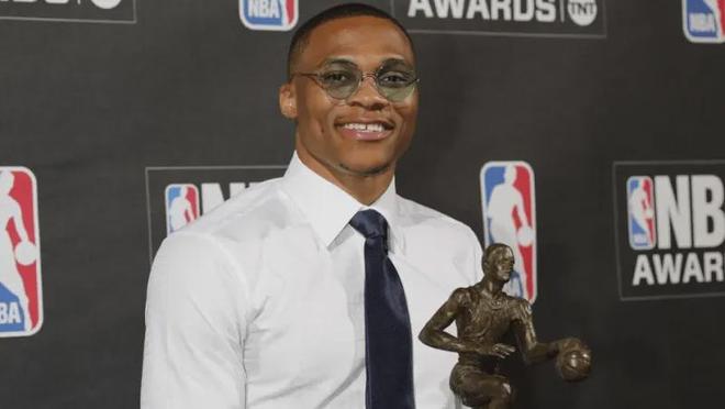 也正是依靠这种极其炸裂的数据表现,在当年常规赛MVP评选中,威少获得101张选票中的69张首轮票,最终以888得分获得常规赛MVP荣誉,通过前几项数据排名也可以看出,当年和他竞争MVP的劲敌就是哈登,两人的MVP之争极其激烈,最后哈登获得753分屈居第二,第三名伦纳德500分,第四名詹姆斯333分。